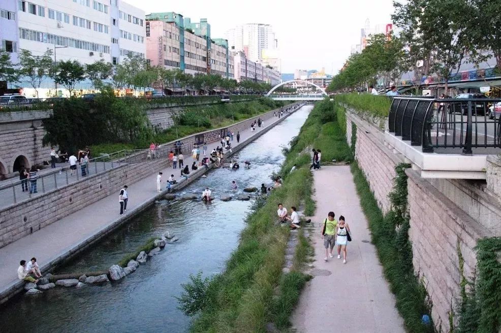 韩国的清溪高架道路建成于韩国经济高速起飞的70年代。2003年,在当时首尔市长李明博的推动下,配合一系列路网改造,清溪高架路被拆除,恢复早年的人工河,沿河一带被改造成首尔市中心的休憩地。