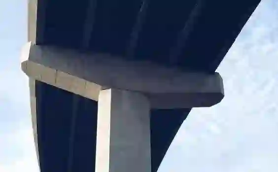 但独柱式高架桥也不是没有缺点,或者说是它的天然缺陷:早期的独柱墩式高架桥在桥墩和路面的链接部分往往采用单支座设计,使得桥梁抗倾覆稳定性变弱,容易发生路面侧翻。
