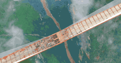 图为位于贵州的北盘江第一桥,桥面至江面距离565.4米,是“世界最高桥”,同时也是世界最大跨径钢桁架梁斜拉桥,并荣获有桥梁界的“诺贝尔奖”之称的古斯塔夫斯金奖。
