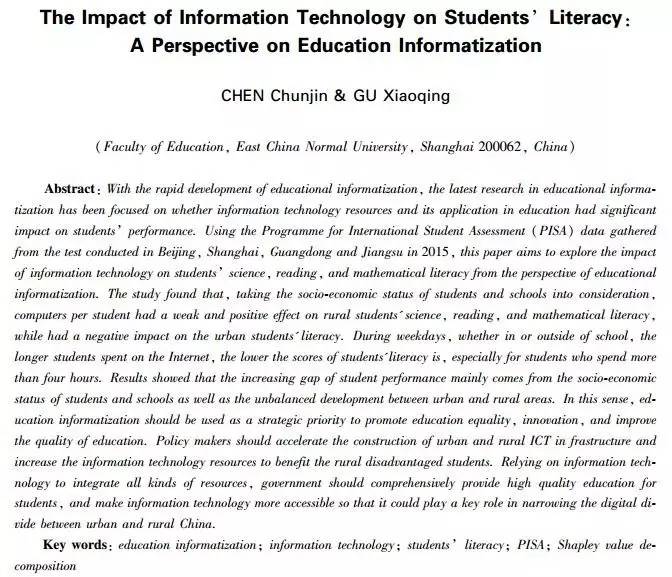 关键词:教育信息化;信息技术;学生素养;PISA;夏普里值分解