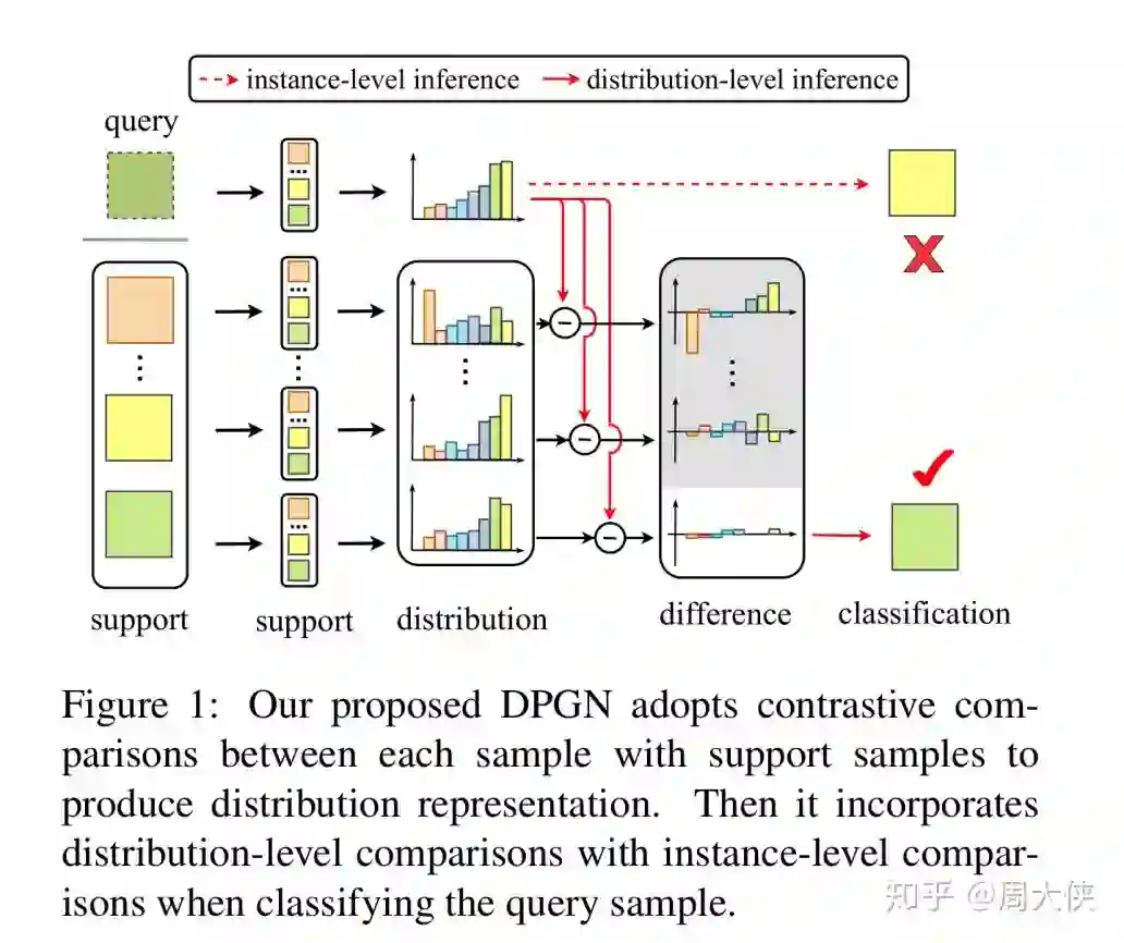 目前大部分基于GNNs的元学习方法对实例级(instance-level)关系进行建模。本文扩展了此思想,用1-vs-N的方式将一个实例与所有其他实例对应的分布级(distribution-level)关系进行建模,提出了 distribution propagation graph network (DPGN)方法用于小样本学习。该方法同时利用了实例级(instance-level)关系和分布级(distribution-level )关系。构造了一个由一个点图( point graph)和一个分布图( distribution graph)组成的对偶完全图网络(dual complete graph network),其中每个节点代表一个实例。大量的实验表明DPGN能取得SOTA性能。原文和代码链接如下: