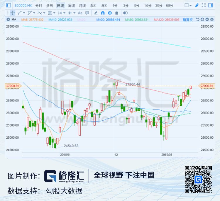 今日,港股市场全线高开,市场延续前期反弹趋势,投资者信心持续回升。恒指全日维持高位震荡,一举站上27000点上方。截至收盘,恒指大涨1.25%,报27090.81点。国指涨1.19%,报10636.97点。主板全日成交920.25亿港元,港股通净流入13.11亿元。