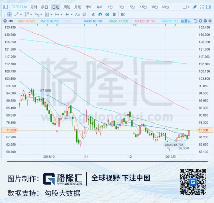 今日,舜宇光学科技(02382.HK)最终大涨5.1港元,报收71.65港元,涨幅为7.66%,领涨恒指成份股。全天成交额10.82亿港元,最新总市值784亿港元。