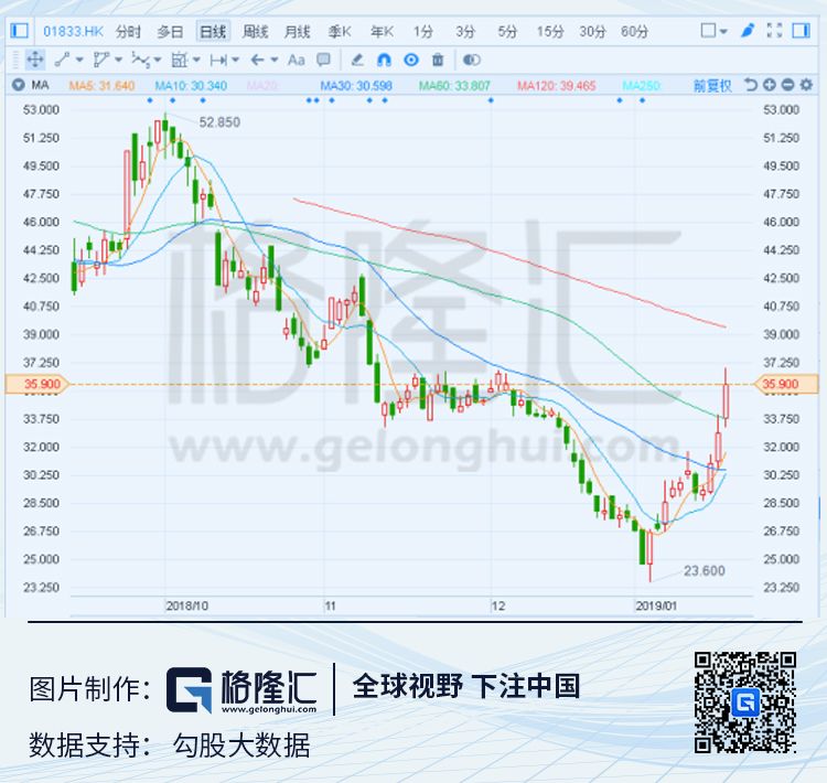 中国最大的移动互联网医疗平台平安好医生(01833.HK)大涨9.28%,报35.9港元,成交额2.36亿港元,最新总市值383.15亿港元。截至目前,该股已连续第4日上涨,累涨幅度达23.16%。从1月4日开启至今的这波反弹,11个交易日内累涨幅度已达45.34%。