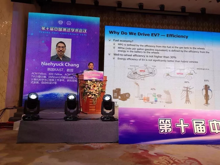 韩国科学与技术高等研究院 KAIST 的 Naehyuck Chang 教授做了题为“Design Automation of Low-power Battery Electric Vehicles”的主旨报告。能效问题一直是电动汽车设计中最富挑战 的议题之一,Naehyuck Chang 教授在报告中介绍了一个他们开发的瞬时功耗模型,该模型充 分考虑了电动汽车重量、速度、加速度、道路斜率等综合因素以保证其高可信度。报告中还介绍了一种在设计阶段的快速综合方法,可大幅提升电动汽车动力系统的能效。