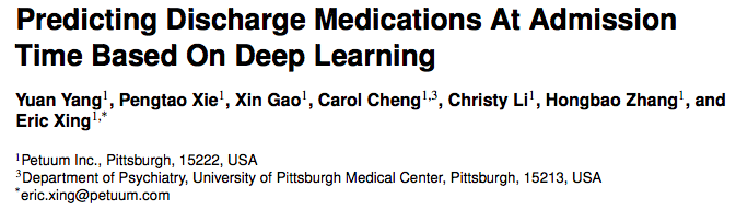 知名人工智能创业公司 Petuum 近期发表了几篇论文,本着尊重医疗行业状况和需求的研究思路,体现出了一种务实风格,并直接应用于他们的产品。为更好地传播人工智能与医疗结合的研究成果,同时为人工智能研究者和医疗从业者带来更加实用的参考,机器之心和 Petuum 将带来系列论文介绍。本文是该系列第三篇,介绍了使用深度学习在就诊时间预测出院用药的方法。