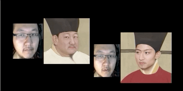 简单来说,就是从当时绘画作品中提取人脸,并进行还原,最后参考自己的脸部动态录像生成视频。