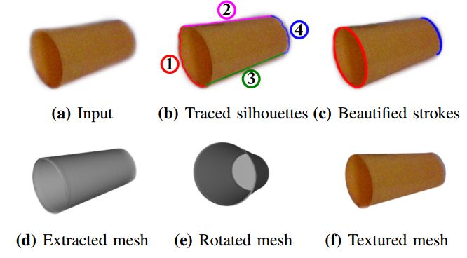 图2:跟踪杯子的轮廓来提取它的3D网格,用户可以将网格指定为空心