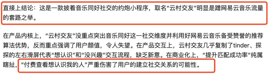 可惜的是,网易云音乐这次的试水完全忽略“音乐社交”的内涵,这是一种建立在情感交换之上的文化身份符号认同过程,是基于某一情境下,对某首歌及其评论产生了共鸣进而形成的社交行为,而不是一种刻意为之甚至需要强行利用“个人匹配”筛选机制去达成的某种连接。音乐是社交的目的,而不是作为社交的手段。