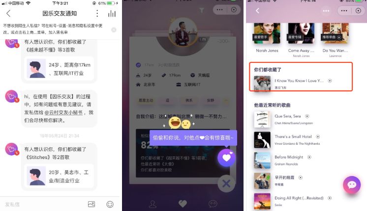 说完前面的音乐社交,接下来我们谈谈网易云最近推出的新社交功能——因乐交友。
