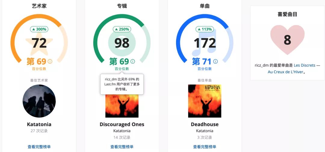 最厉害的还不是这个,我随便截取了Last.fm一个用户的界面,大家可以看看下图显示的数据: