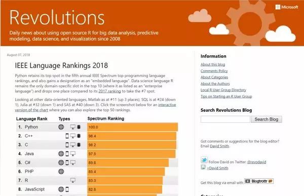 Revolution Analytics是一个杂文网站,种类繁多。平时会发布一些结构较小的文章,而每个月都会出现一次Roundup。这个Roundup通常分两个部分: 新闻和学习资源。建议主要关注这个Roundup里的学习资源,有许多技术性的文章质量很高。