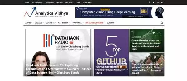 Analytics Vidhya与Towards Data Science一样,这也是一个优秀的数据科学教育网站。在它的blog里面,大多数的文章以教程的方式展开,并附有代码。除此之外,还有一些纯干货型文章,例如:The Essential NLP Guide for data scientists (with codes for top 10 common NLP tasks)。