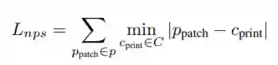 其中 ppatch 是贴纸中的一个像素,而 cprint 是一组可打印颜色 C 中的颜色。这种损失有利于确保图像中的颜色与可打印颜色集中的颜色密切相关。