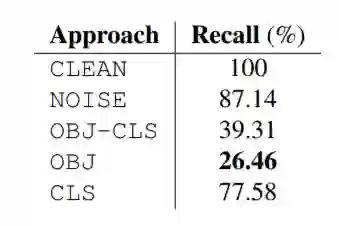 上表所示为使用不同贴纸的警报触发分析结果。可以清楚地看到,贴纸(OBJ-CLS,OBJ 和 CLS)显著降低了警报数量。