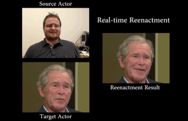 事实上,AI直播换脸已有程序。国外的Face2Face软件,通过摄像头和人脸跟踪,就可以实时完成现实人物和视频人物之间的人脸映射。不过这种AI换脸技术即使使用在娱乐方面也处于灰色地带。