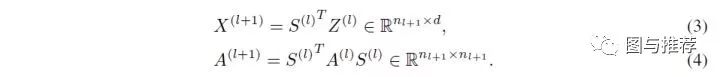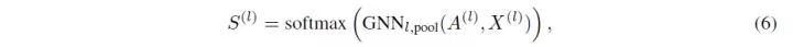 首先,不仅使用一个 GNN 来抽取信息得到 Z,而且还使用另外一个 GNN 来得到权重矩阵(assignment matrix) ,它表示了每一个上一层中的节点以多大的权重被分配到下一层的哪些节点中。