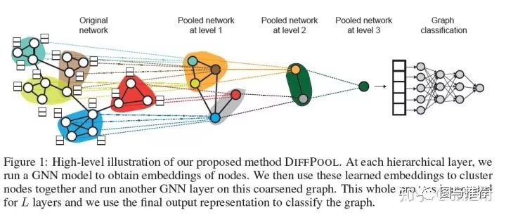 DiffPool: Differentiable Pooling介绍了一种聚合图中的节点,从而学习到包含层级信息的图表示。