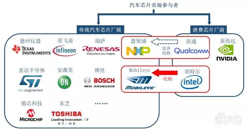 智东西认为, 汽车从“功能机”进化为“智能机”,从“汽车电子”到“无人驾驶”。战略看好智能驾驶产业链中汽车芯片为其中的核心元器件。从全球范围看,布局汽车芯片产业的巨头公司包括:英伟达、英特尔、高通等;潜在的兼并收购标的包括:英飞凌等。国内公司从车载娱乐系统等安全等级要求较低的产品入手,有望逐渐从后装渗透至前装、从国产整车厂渗透至合资车厂。