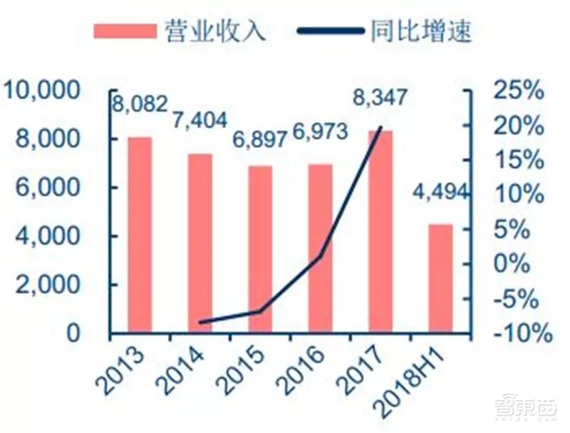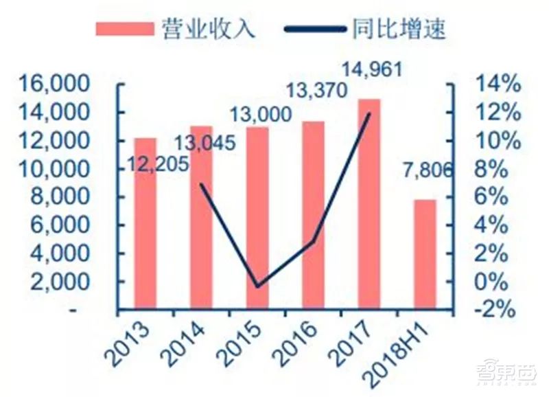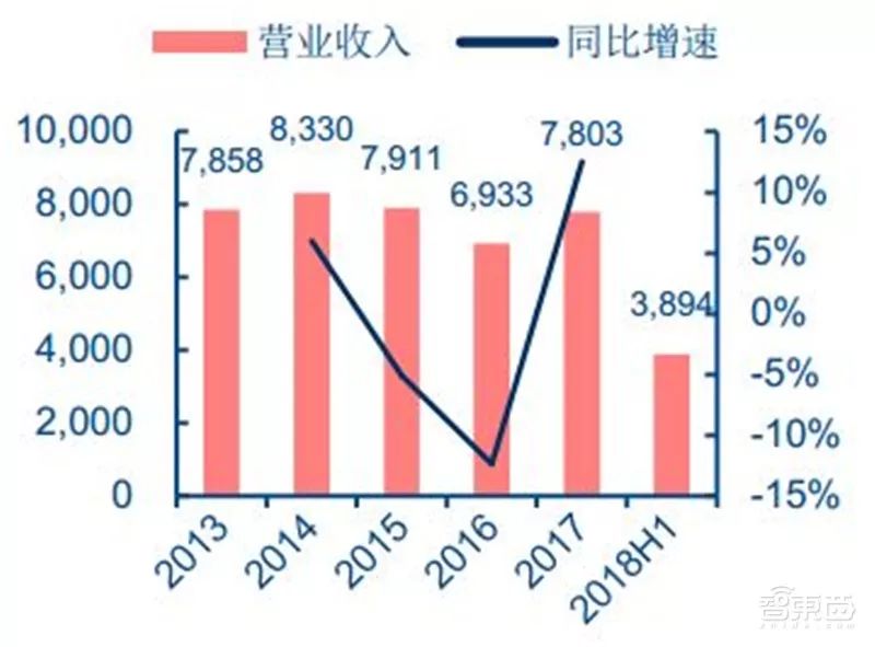 英特尔传统业务增长乏力,进军汽车领域创造业绩新增长点。英特尔曾经是世界上最大的半导体芯片制造商。据 PassMark 统计,2017Q1 英特尔占据全球 CPU 行业的市场份额为 80%。近年随着智能手机的兴起与个人电脑市场的景气降低,芯片主业收入增速明显下降,公司营业收入被三星电子超越。公司曾尝试生产了手机处理器但最后表现失利,并不得不解散了负责该业务的部门。近年来,英特尔通过大量收购积极布局无人驾驶、物联网、人工智能、VR 等新兴领域,创造业绩的新增长点,力图实现从传统芯片制造商向多元解决方案提供商转型。