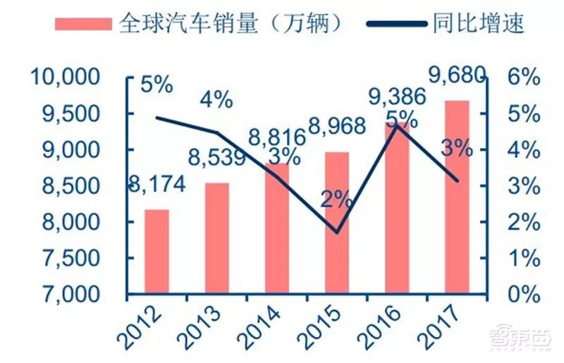 智能驾驶涉及人机交互、视觉处理、智能决策等,核心是 AI 算法和芯片。伴随汽车电子化提速,汽车半导体加速成长,2017 年全球市场规模 288 亿美元(+26%),远高于整车销量增速(+3%),其中占比最高的为功能芯片 MCU(66 亿美元,占比 23%),随后还包括功率半导体(21%)、传感器(13%)等。