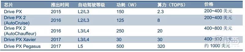 特斯拉:从 Mobileye ASIC 到英伟达 GPU。2014 年特斯拉发布 Autopilot 1.0,搭载 1 个前置摄像头、1 个后置倒车摄像头(不参与辅助驾驶)、1 个前置雷达、12个超声波传感器,视觉芯片采用 MobileyeEyeQ3,主控芯片采用 NVIDIA Tegra 3。2016 年底特斯拉发布 Autopilot 2.0,搭载 3 个前置摄像头(不同视角广角、长焦、中等)、4 个侧边摄像头(左前、右前、左后、右后)、1 个后置摄像头、1 个前置雷达(增强版)、12 个超声波传感器(传感距离增加一倍),主控芯片采用NVIDIADrive PX 2,处理速度为 Autopilot 1.0 的 40 倍。