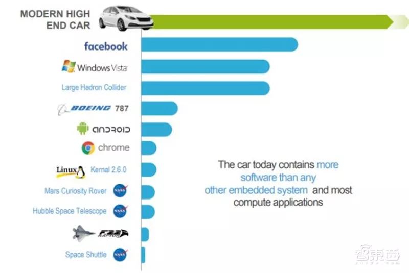 智能驾驶涉及人机交互、视觉处理、智能决策等,AI 算法和芯片是核心。据恩智浦统计,目前一辆高端汽车已经搭载超过 1 亿行代码,远超飞机、手机、互联网软件等,未来伴随自动驾驶的渗透率及级别提升,汽车搭载的代码行数将呈现指数级增长。自动驾驶软件计算量已经达到 10 个 TOPS(Tera Operations Per Second,万亿次操作每秒)量级。传统汽车 MCU 的算力难以满足自动驾驶汽车的计算要求,GPU、FPGA、ASIC 等 AI 芯片进入汽车市场。