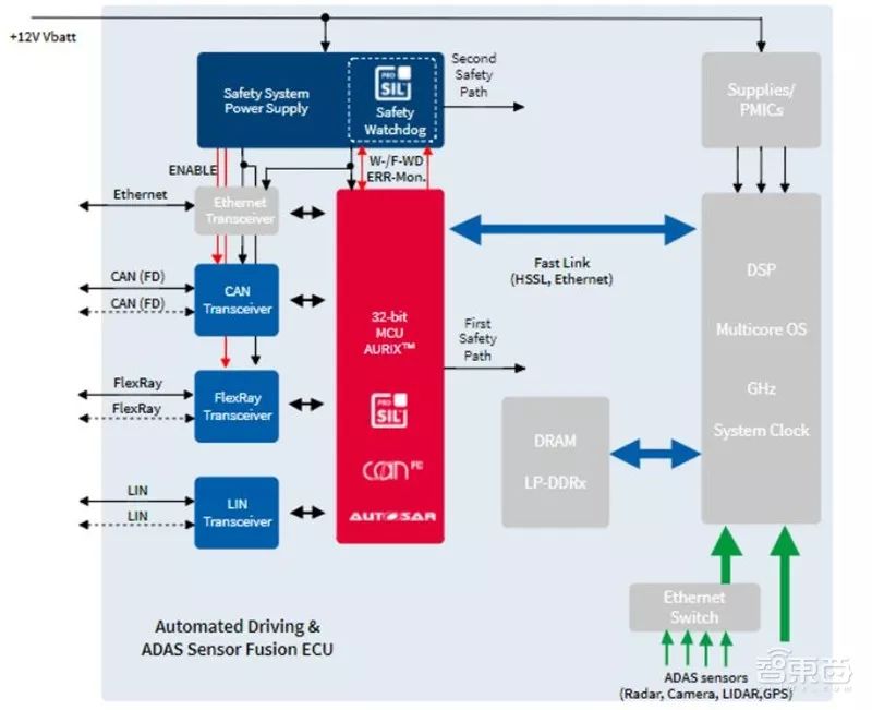 ▲英飞凌 Aurix 自动驾驶控制器架构图