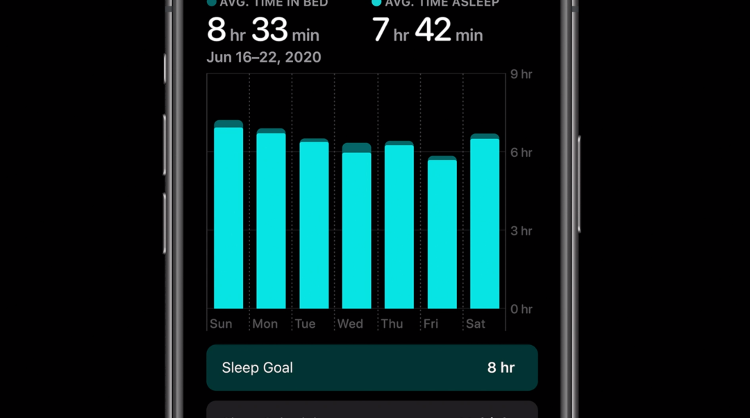 watchOS 7 还引入了「睡眠跟踪」功能,借助 Apple Watch 的加速度传感器,手表能够智能监测佩戴者的睡眠质量,并在隔天自动生成一个显示前一夜睡眠质量的可视化图表,每周还会自动推送一个整周睡眠趋势。