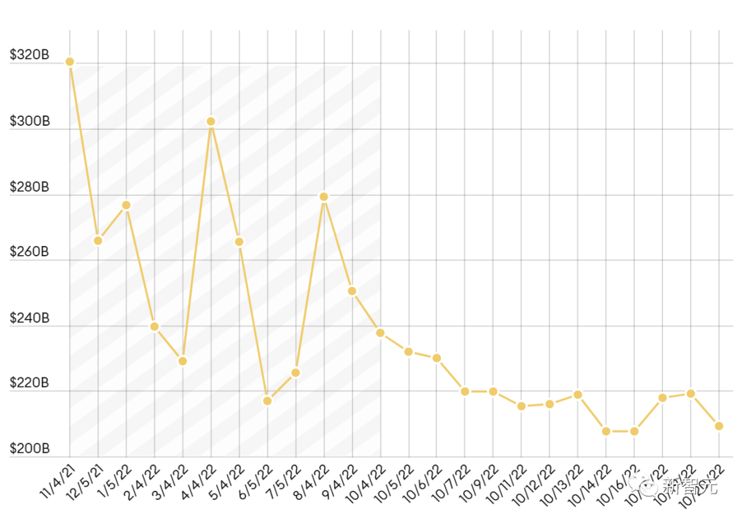 如果与2021年11月4日的峰值比较,马斯克拥有的财富已经下降了近35%,从去年11月时最高3200亿美元降至上周收盘时的2094亿美元。