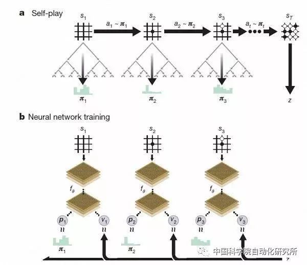 第一,神经网络权值完全随机初始化。不利用任何人类专家的经验或数据,神经网络的权值完全从随机初始化开始,进行随机策略选择,使用强化学习进行自我博弈和提升。