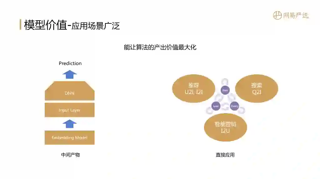 接下来介绍表征模型为什么值得深入去做?它能产生什么价值?问题答案跟文章标题密切相关:Embedding是一个全能选手,应用非常广泛,能让算法产出价值最大化。应用场景包括: