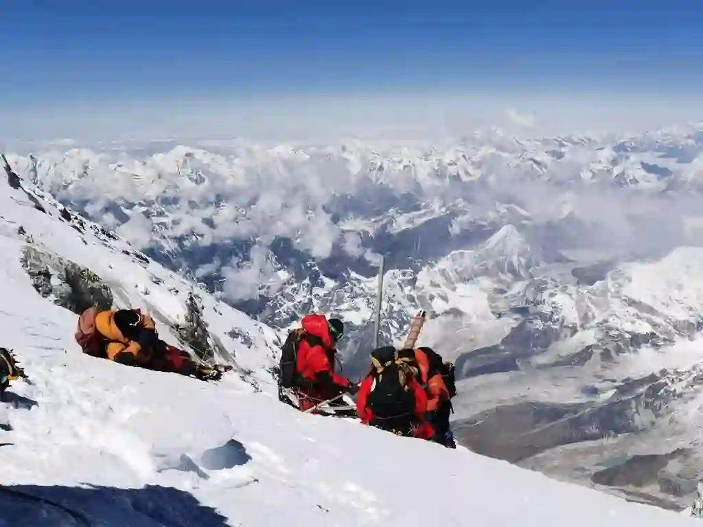4日中午,我国珠峰科考队员成功登顶,并首次利用高精度雷达,测量峰顶冰雪厚度。12时46分许,科考队员在珠峰成功架设世界海拔最高的自动气象站。(新华社)