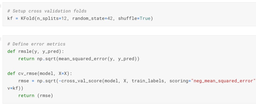 评估模型好坏是根据模型预测的销售价格与实际销售价格之间的均方根误差(RMSE)。将RMSE转换成对数尺度,确保预测昂贵房屋和便宜房屋时的误差会对产生的分数影响相当。