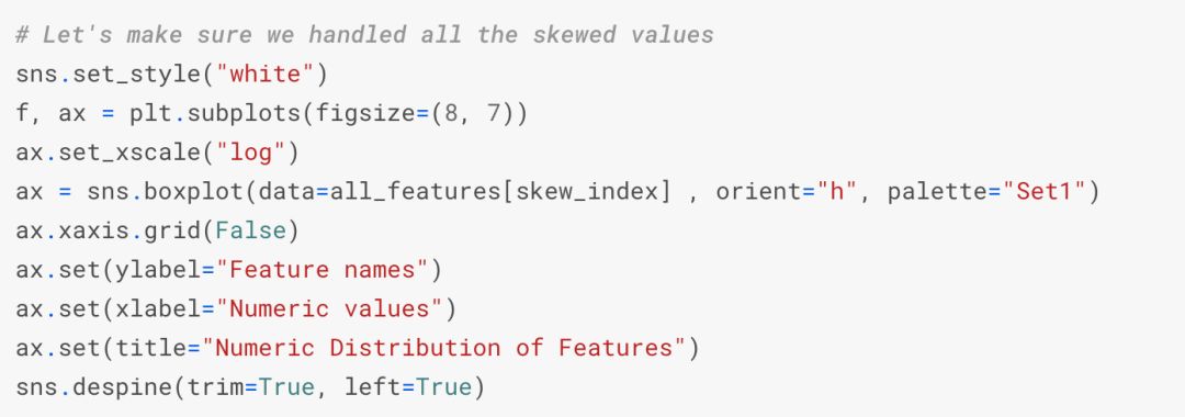 可以看出,销售价格在右边倾斜,这是因为大多数ML模型不能很好地处理非正态分布数据。