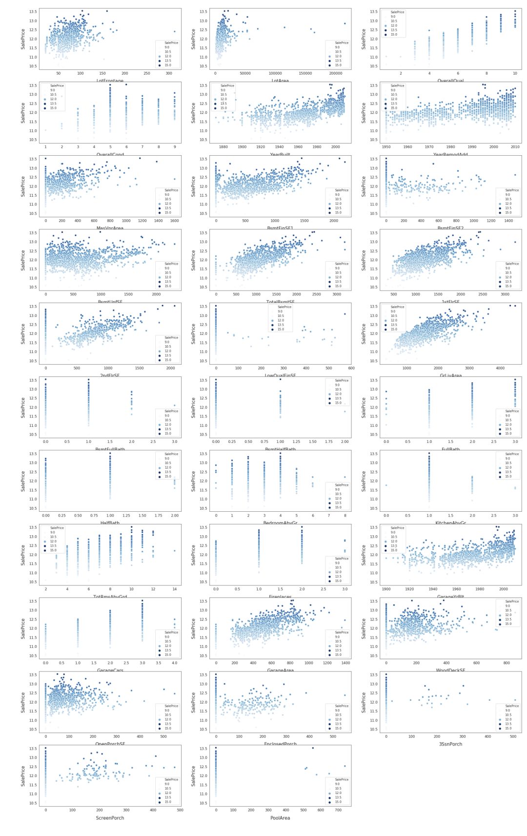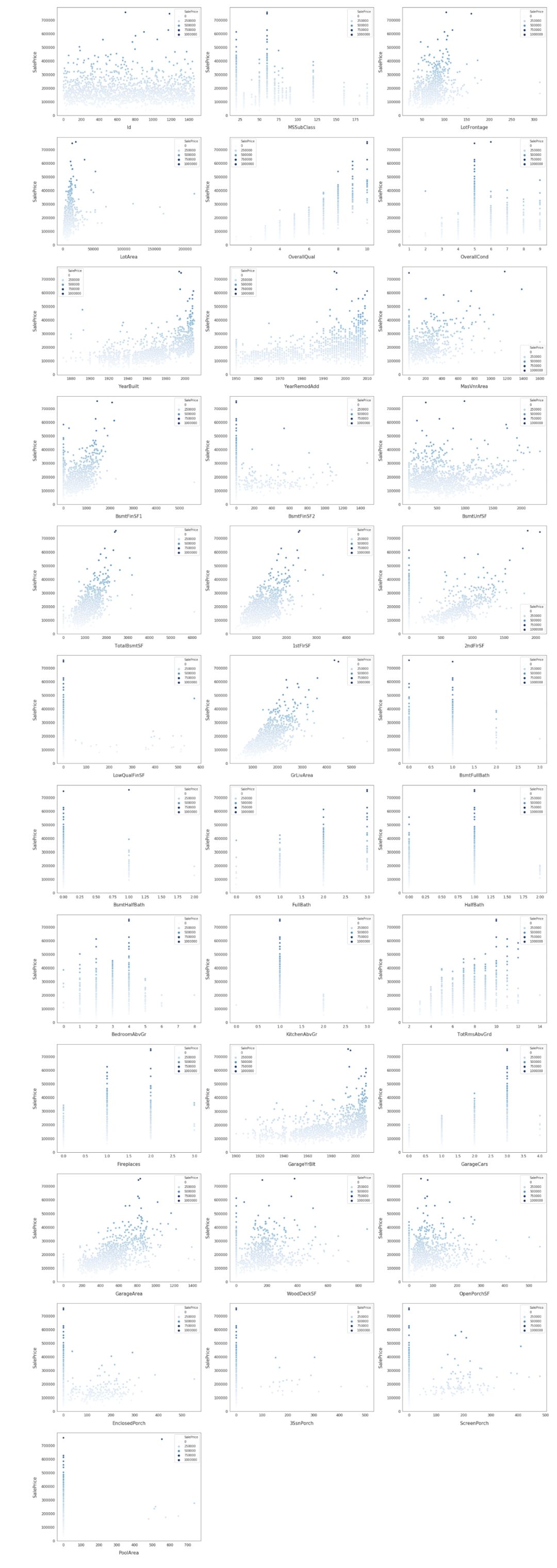 让绘制销售价格与数据集中的一些特性之间的关系。