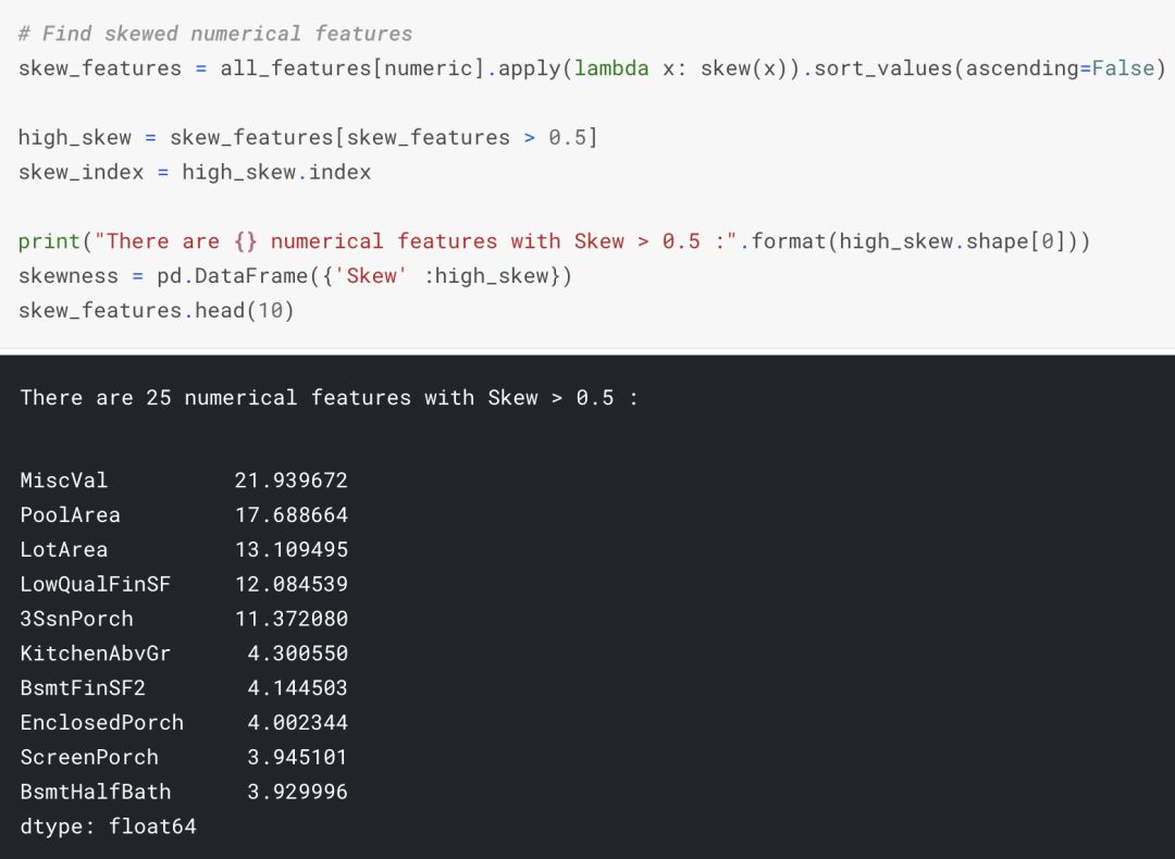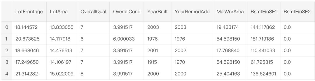 我们通过计算数值特征的对数和平方变换来创建更多的特征。