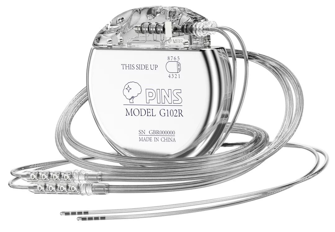 ▲全球首个质保10年可体外充电的变频脑起搏器系统