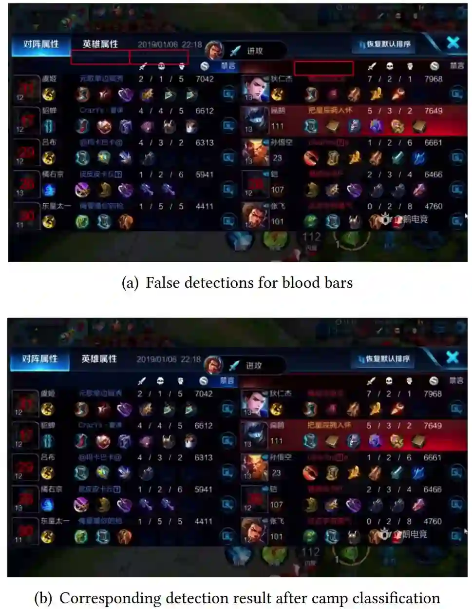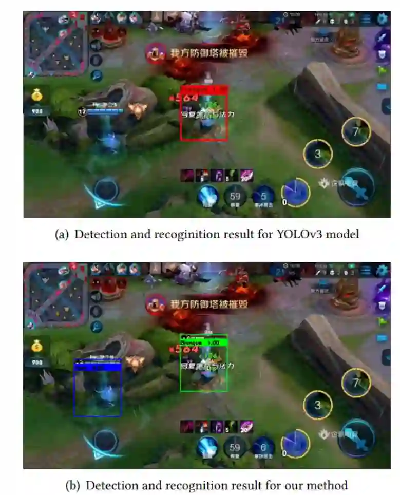 之所以采用两步的算法是因为每个英雄的血条具有固定的大小和形状。因此,采用这种算法能够高效、准确地检测出英雄。同时,识别阶段也会从准确的检测结果中受益。因此,在这一特定任务中,两步算法的效果要优于一步算法。