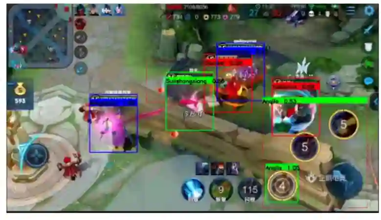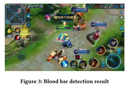 在仔细观看了《王者荣耀》的游戏视频后,腾讯研究人员发现了王者荣耀英雄的一些共同特征:无论属于哪个阵营,这些英雄的上方都有一个血条,显示其生命值。虽然不同英雄的血条大小、形状相同,但颜色、生命值和等级有所差别,这就为英雄的检测提供了一种简单的方法。