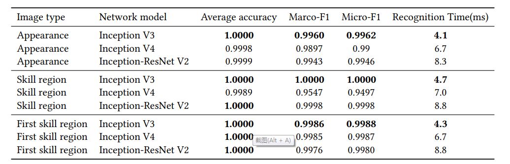 下图 7 展示了英雄检测和识别的完整方案。研究者在输入视频帧上运行英雄检测算法,检测出图像中的所有英雄。对于主英雄(leading/self hero),研究者将剪裁好的外观、技能区域和第一个技能区域图像分别发送到三个训练好的分类器中。最终的识别结果基于三个分类器的标签和置信度得分总和。对于其他英雄,由于没有可用的技能区域,如果置信度得分高于阈值,则识别结果为外观分类器的标签。