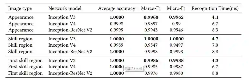 从表 2 可以看出,对于所有类型的图像,Inception V3 网络的性能都优于 Inception V4 和 Inception-ResNet V2,因为 Inception V3 网络足以处理这些人工合成的图像。