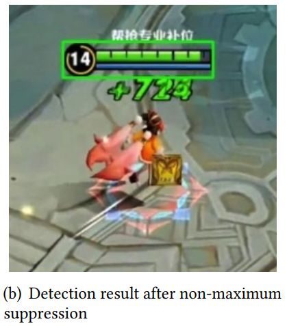 如上所述,YOLOv3 模型倾向于只检测图像中心周围的英雄,其他位置的英雄则选择忽略,因为训练集中的主角都在图像中心位置附近。但本文提出的方法可以检测到画面中所有的英雄,如图 8(b) 所示。