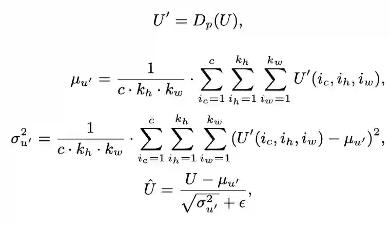 式中,p 是 dropout 概率, 是 dropout 操作,U 是归一化单位, 是 dropped-out 单位, 和 区域和 dropout 单位的平均值和方差, 是 normalized 单位。KernelNorm 在训练过程中引入了正则化效果,通过使用对 dropped-out 单元 ′ 计算的统计量,归一化原始单元 U 的元素,提高了模型的泛化能力。