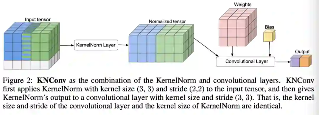 为了解决这个问题,作者提出了一种计算效率高的 KNConv,其中卷积的输出使用归一化单位的均值和方差进行调整。这样,就不需要对元素进行归一化,从而将计算时间提高了几个数量级。以 KernelNorm 和计算效率高的 KNConv 为主要构建块,作者实现了与流行的 CNN(包括 VGG、DenseNet 和 ResNet)相对应的核归一化卷积网络(KNConvNets)。