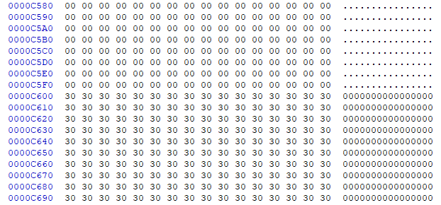 前面说过压缩包的大小仅有1.5MB,而解压后的文件大小达到了753MB,这意味着它的压缩率达到了惊人的99.8%。远远大于可执行文件的平均压缩率47%。为了达到如此高的压缩率,该可执行文件里有很大可能包含了极易压缩的填充物。如果在十六进制编辑器中查看,就很容易发现这种填充物。