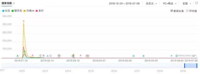 这三款产品在发布当天在网络上抢尽风头,从百度指数上看,热度遥遥领先的是王欣的马桶MT,其次是头条系的多闪,最后是老罗站台的聊天宝。
