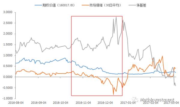 图15:转换期权价值与市场情绪均对净基差有负向影响的案例(T1706-160023.IB)