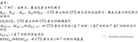 如果投资者卖出非CTD券(如b券)的基差,那么到期时需要将交割得到的CTD券(如a券)卖掉并买回原先的非CTD券。那么整个套利过程的收益(不考虑交易成本):