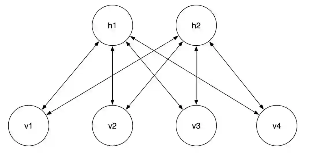 最简单的来说就是加入了限制,这个限制就是将完全图变成了二分图。即由一个显层和一个隐层构成,显层与隐层的神经元之间为双向全连接。